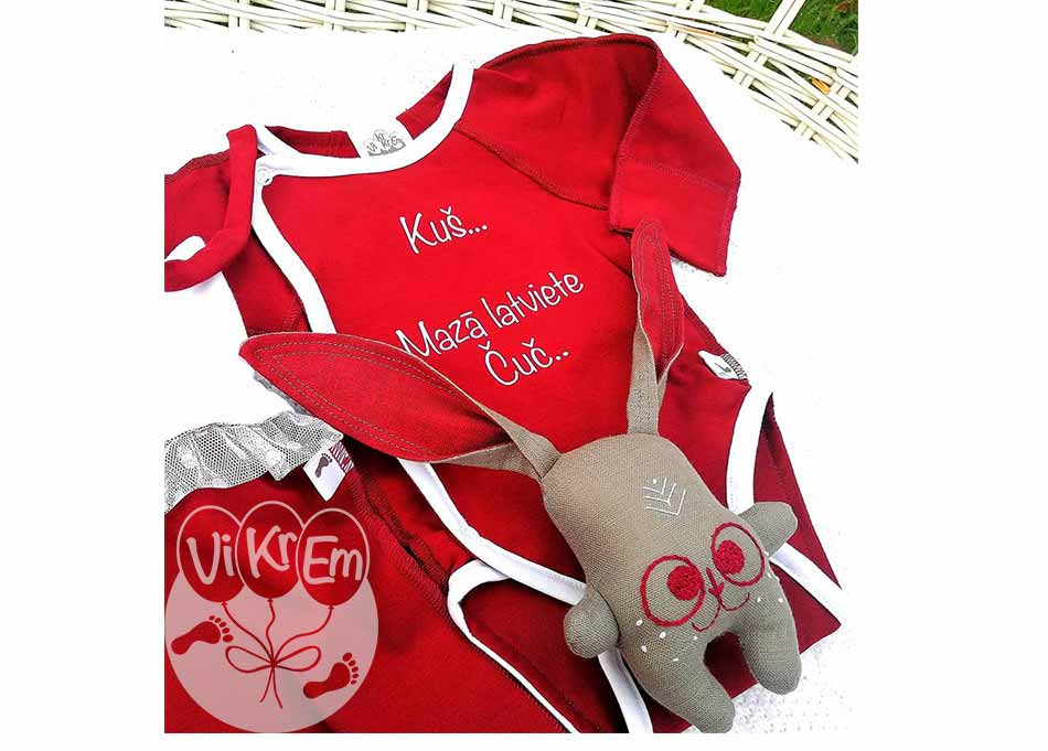 Ir iespēja izveidot šādu komplektu arī ar bodijkrekliņu un biksītes bez cakām, par to arī droši varam vienoties e-pastu sarakstē